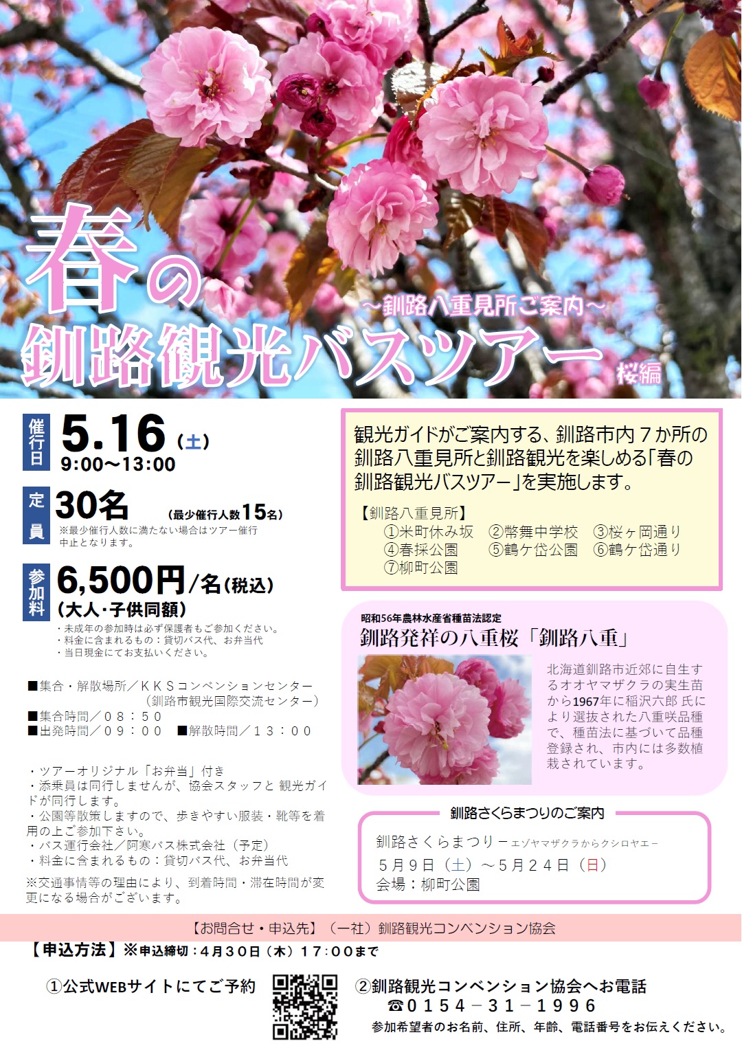 観光ガイドがご案内する、釧路市内7か所の釧路八重見所と釧路観光を楽しめる「春の釧路観光バスツアー」です。